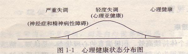 4、心理健康的狀態(tài)具有動(dòng)態(tài)性。心理健康的狀態(tài)不是靜止不變的,而是一個(gè)動(dòng)態(tài)發(fā)展過(guò)程。心理健康的水平會(huì)隨著個(gè)人的成長(zhǎng)、經(jīng)驗(yàn)的積累、環(huán)境的改變,以及自我保健意識(shí)的發(fā)展而發(fā)展變化。大學(xué)生心理健康水平符合正態(tài)分布的規(guī)律,多數(shù)人是健康的。心理健康與不健康之間并不是非此即彼的對(duì)立狀態(tài),從心理健康到心理不健康是一個(gè)連續(xù)狀態(tài),呈正態(tài)分布(圖1-1),每個(gè)狀態(tài)間沒(méi)有絕對(duì)的界限。