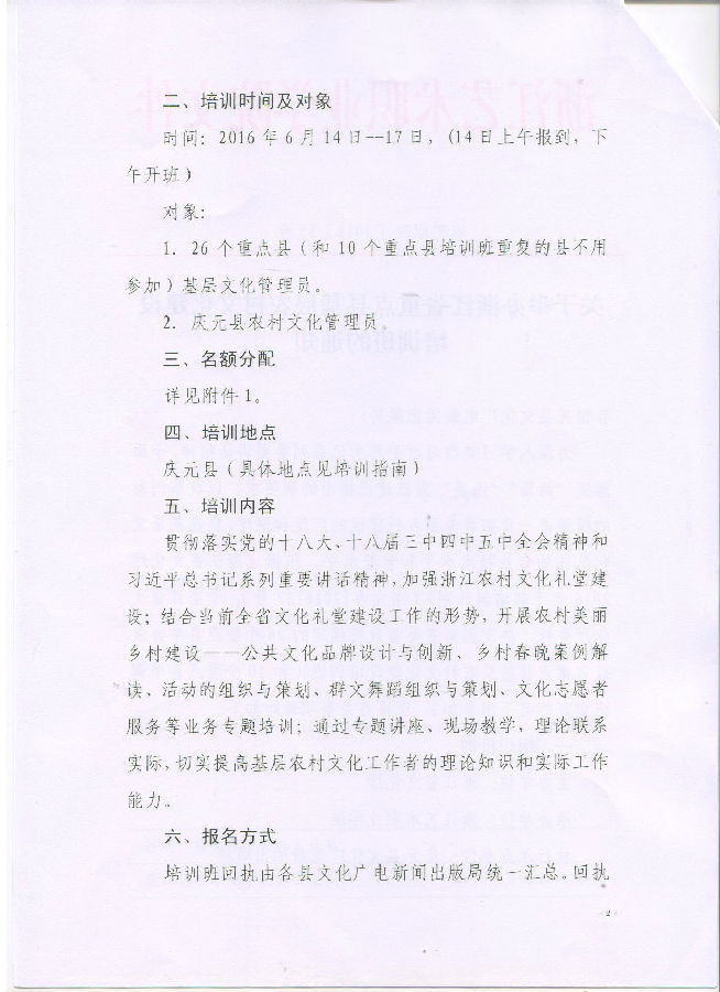 關(guān)于舉辦浙江省重點縣基層農(nóng)村文化建設(shè)培訓(xùn)班的通知