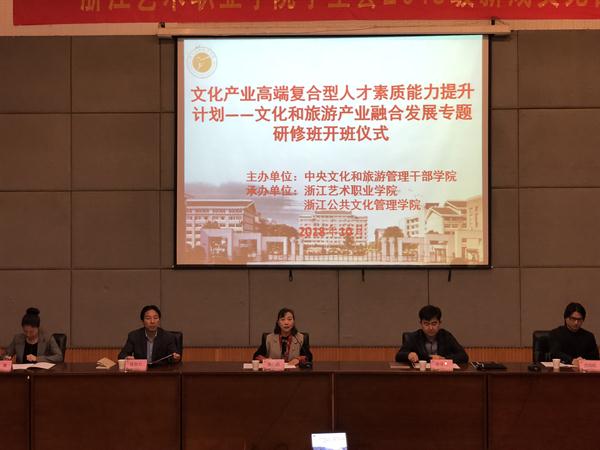 10月22日上午,由中央文化和旅游管理干部學(xué)院主辦、浙江藝術(shù)職業(yè)學(xué)院(浙江公共文化管理學(xué)院)承辦的文化和旅游產(chǎn)業(yè)融合發(fā)展專(zhuān)題研修班開(kāi)班儀式在浙江藝術(shù)職業(yè)學(xué)院圖信報(bào)告廳舉行。來(lái)自北京、天津、上海、江蘇、廣東等省市、自治區(qū)、直轄市的67名學(xué)員,將在浙藝接受為期5天的培訓(xùn)。
