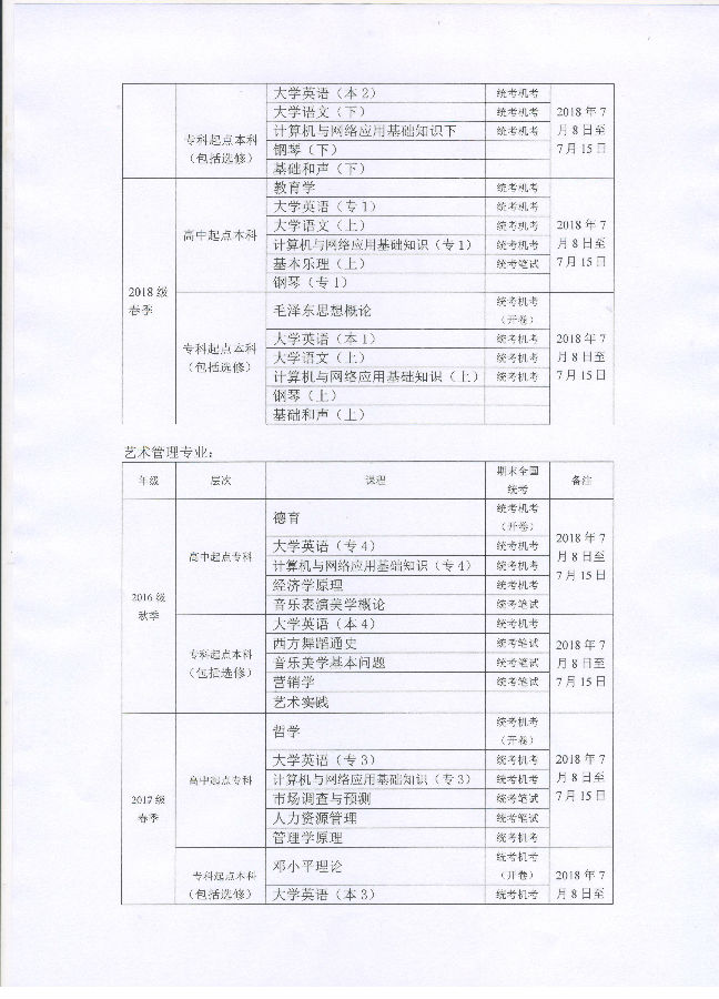 中央音樂學(xué)院遠(yuǎn)程教育2017-2018學(xué)年第二學(xué)期期末面授、考試安排(2018.07).doc