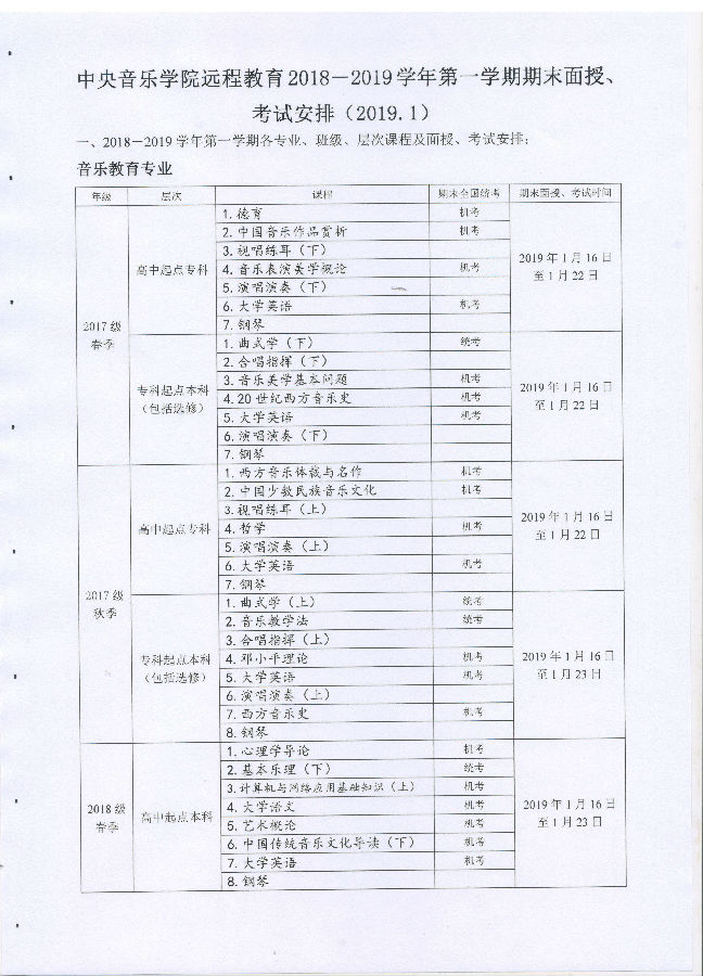 備注:中央音樂學院遠程教育學院已將統(tǒng)考課程的復習題掛在網上,請同學們登陸學習工作室查看,并認真復習。