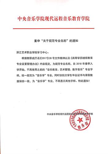 根據(jù)中央音樂學(xué)院現(xiàn)代遠(yuǎn)程音樂教育學(xué)院通知,自2018年春季入學(xué)開始,畢業(yè)證書不再使用之前的“音樂教育、藝術(shù)管理”專業(yè)字樣,統(tǒng)一規(guī)范為“音樂學(xué)”專業(yè),不再顯示其他字樣。