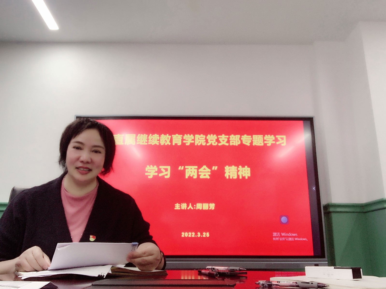 為深入貫徹學(xué)習(xí)2022年全國“兩會”會議精神,正確領(lǐng)悟習(xí)近平總書記重要講話精神,切實增強全體教職工責(zé)任感、使命感和緊迫感,3月25日下午,直屬繼續(xù)教育學(xué)院黨支部聚焦兩會精神,組織黨員干部和全體教職工開展了兩會專題學(xué)習(xí)和主題黨課,并進行了兩會知識競賽活動。