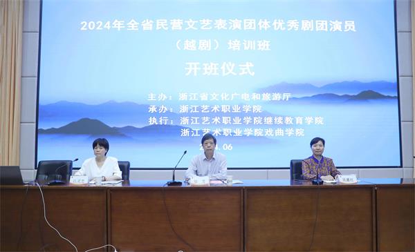 6月27日下午,由浙江省文化廣電和旅游廳主辦、浙江藝術(shù)職業(yè)學(xué)院承辦、浙藝戲曲學(xué)院和繼續(xù)教育學(xué)院共同執(zhí)行承辦的全省民營文藝表演團(tuán)體優(yōu)秀劇團(tuán)演員(越劇)培訓(xùn)班(第一、二期)在我校開班,來自全省各地民營文藝表演團(tuán)體的近200名越劇演員(花旦、小生)參加培訓(xùn)。我校黨委委員、副校長徐芳,繼續(xù)教育學(xué)院院長吳灌紅、戲曲學(xué)院副院長呂靈芝出席開班儀式。儀式由吳灌紅主持。
