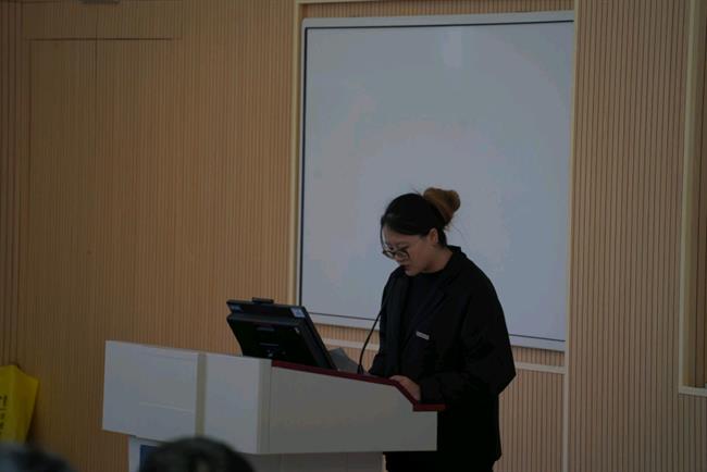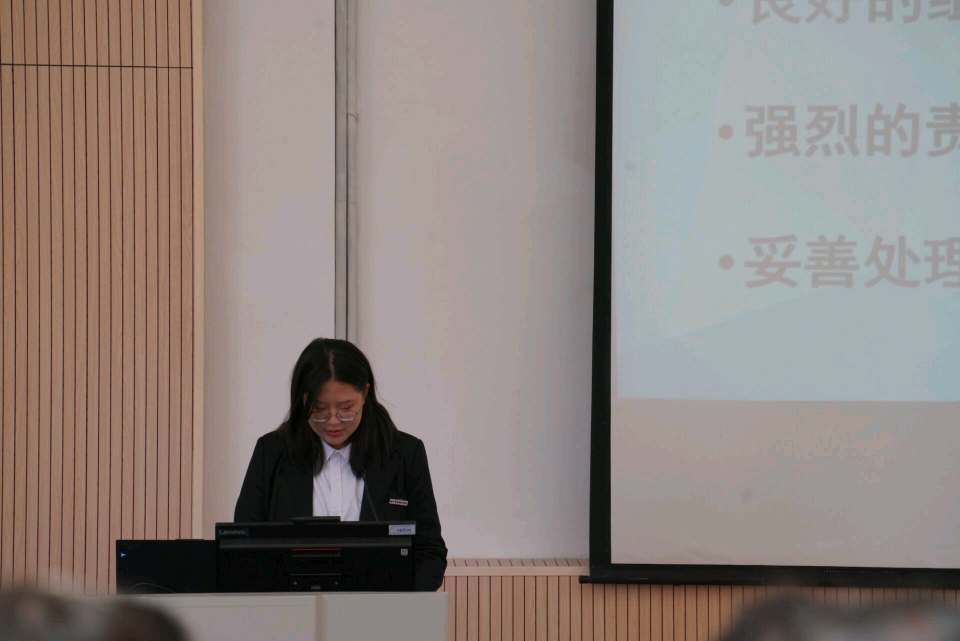 系第十九屆學(xué)生會(huì)執(zhí)行主席胡凱欣匯報(bào)系第十九屆學(xué)生會(huì)工作報(bào)告。