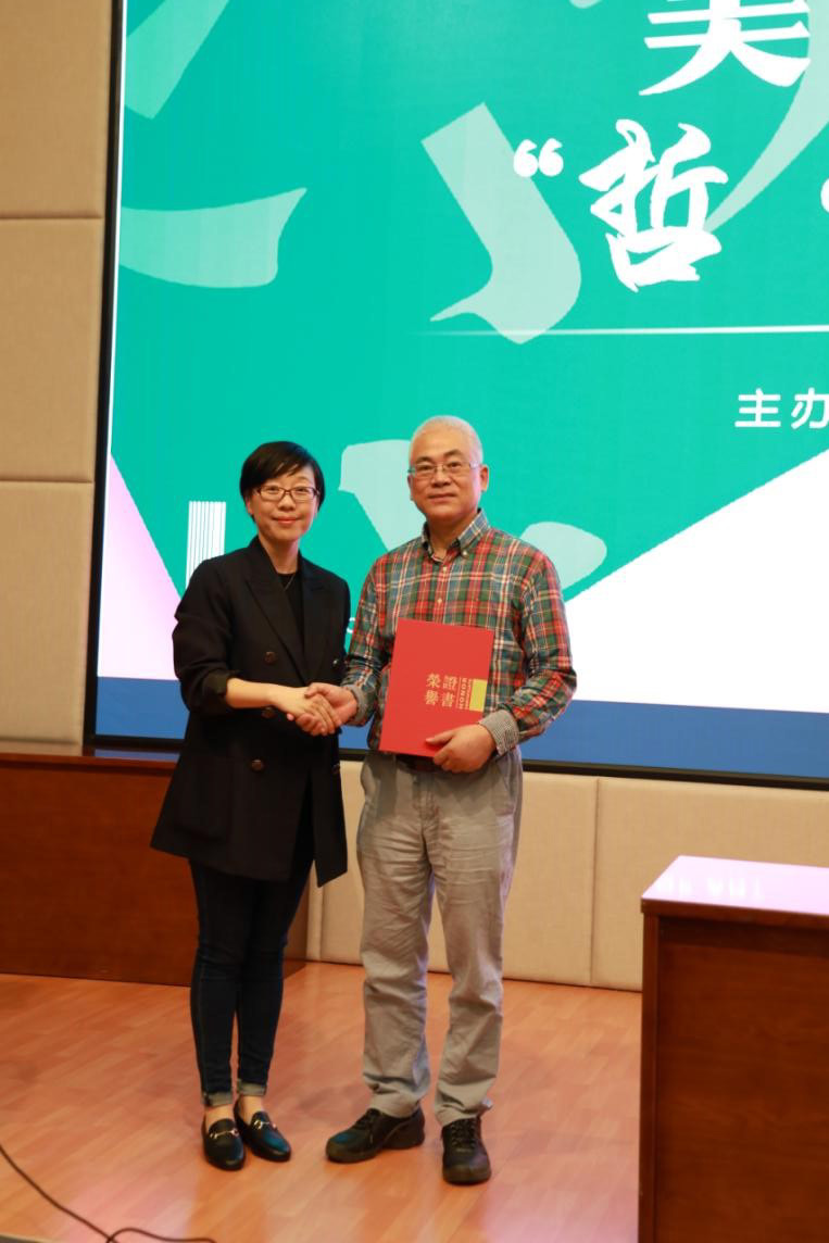 美術(shù)系黨總支書記汪琳為王煒民頒發(fā)榮譽(yù)證書。