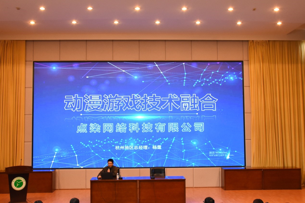 動漫設(shè)計專業(yè)一直以工學(xué)結(jié)合為主要的教學(xué)模式來培養(yǎng)學(xué)生, 企業(yè)的人才需求就是我們對人才的培養(yǎng)目標(biāo)。教研室把資深的企業(yè)專家——杭州點染網(wǎng)絡(luò)科技有限公司總經(jīng)理楊霆老師請來給我們上學(xué)術(shù)月的第一課。