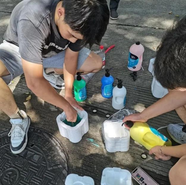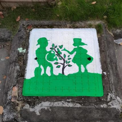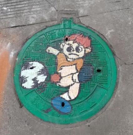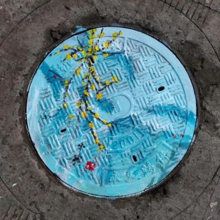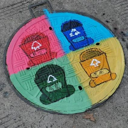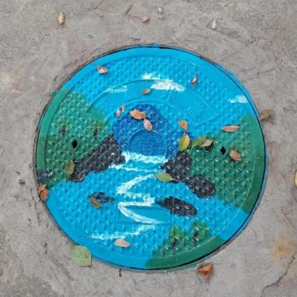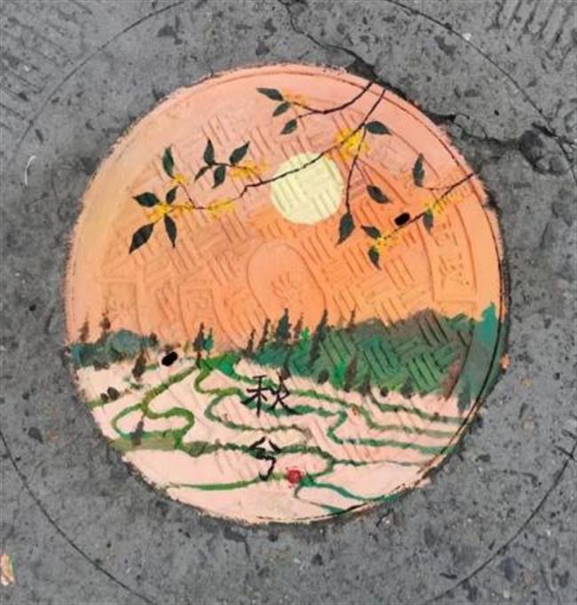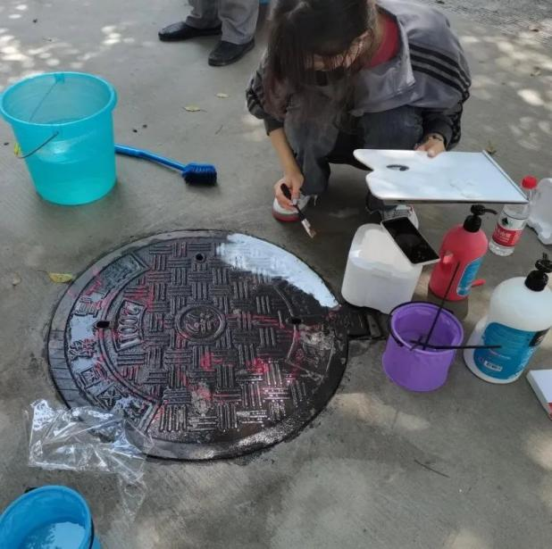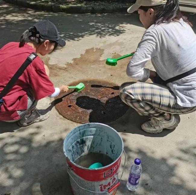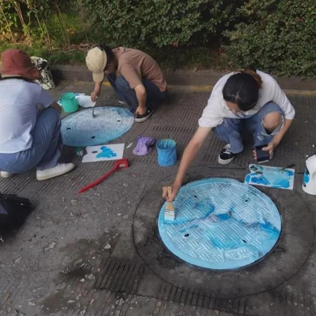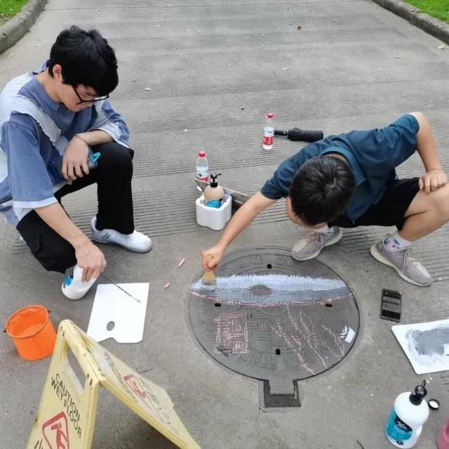 此次井蓋涂鴉是由我系19級(jí)、20級(jí)學(xué)生共15人所繪。活動(dòng)圍繞動(dòng)漫人物、環(huán)境保護(hù)、運(yùn)動(dòng)健康、西湖十景、二十四節(jié)氣五個(gè)主題進(jìn)行繪畫創(chuàng)作。 “為井蓋‘化妝’的過(guò)程并不算復(fù)雜,首先要將井蓋清洗干凈,用粉筆打個(gè)底稿,然后用丙烯顏料填色,晾曬一段時(shí)間后,最后用清漆刷一遍固色。”其中一位正蹲在地上的同學(xué)笑著說(shuō),“烈日下工作確實(shí)會(huì)有點(diǎn)辛苦,但一想到好的作品能讓老師和同學(xué)們享受美,就覺得這些都是值得的。”
