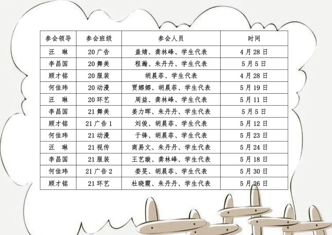 為進(jìn)一步了解疫情期間學(xué)生的思想動(dòng)態(tài)以及在學(xué)習(xí)、生活等方面的訴求,暢通學(xué)院與同學(xué)們溝通交流渠道,設(shè)計(jì)學(xué)院“1+X幫幫團(tuán)”活動(dòng)期間將開(kāi)展各班小型座談會(huì)。具體名單安排如下: