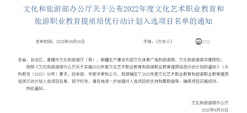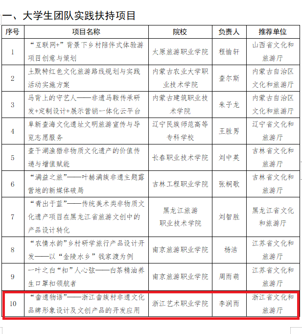喜報|設(shè)計學院大學生團隊實踐扶持項目入選2022年度文化藝術(shù)職業(yè)教育和旅游職業(yè)教育提質(zhì)培優(yōu)行動計劃名單
