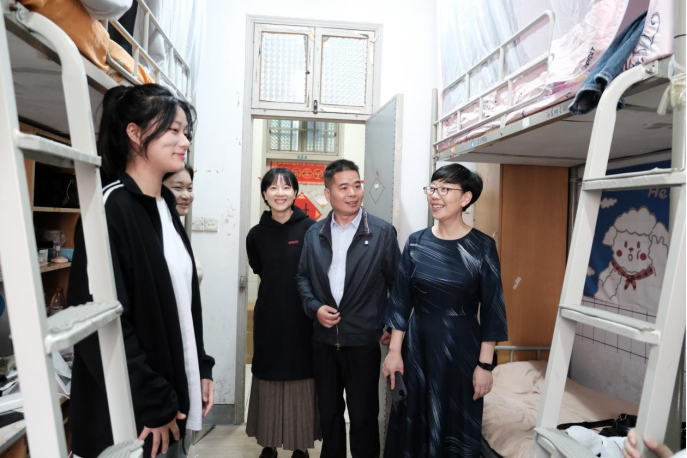 會前,設計學院黨總支書記汪琳,黨總支副書記汪仕龍,辦公室主任陳蔚來到新生寢室,走訪慰問新生入住情況,耐心解答同學們的疑問,鼓勵同學盡快進入學習狀態(tài),迎接新學期的到來。老師們就校園安全、文明寢室建設等方面進行了特別叮囑。