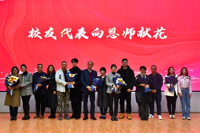 在學(xué)校校友大會上,校友們?yōu)榘嘀魅潍I(xiàn)花,表達(dá)內(nèi)心的感恩。在見證母校蓬勃發(fā)展的同時,為母校送上最誠摯的祝福。