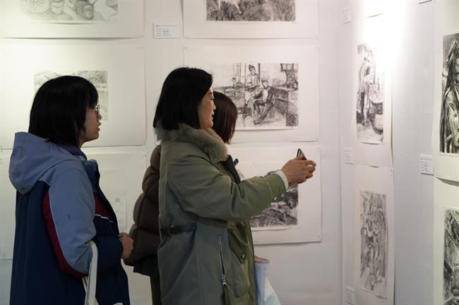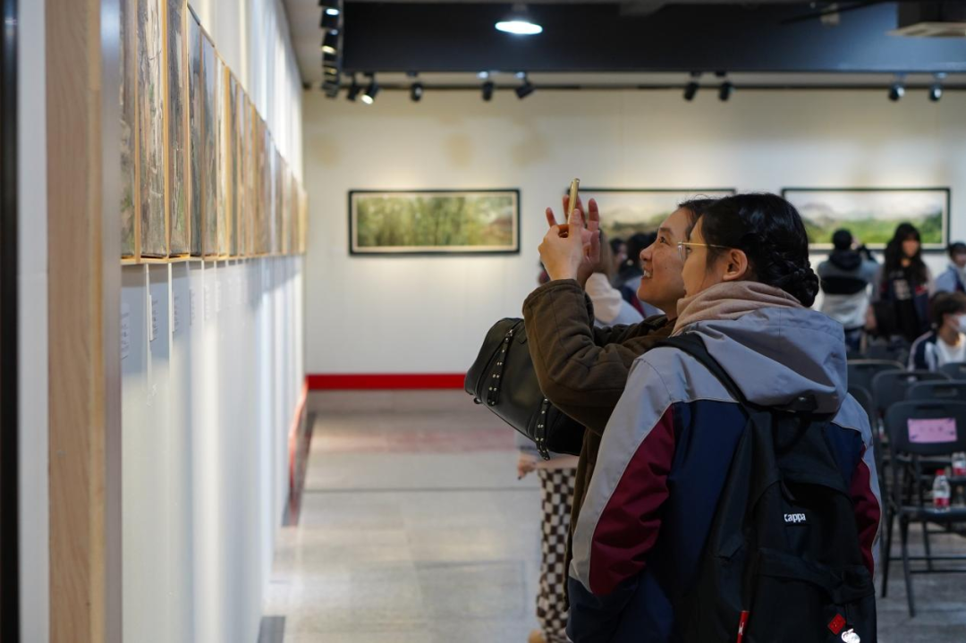 開幕式結(jié)束后,師生們共同觀看了作品展并進(jìn)行親切交流。
