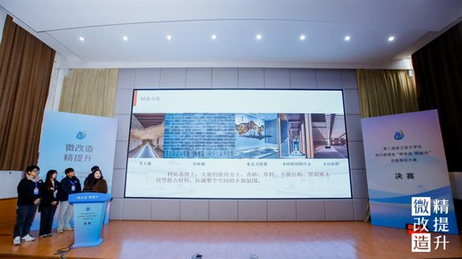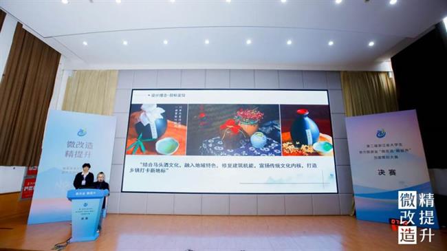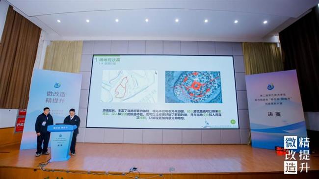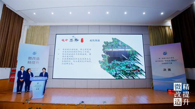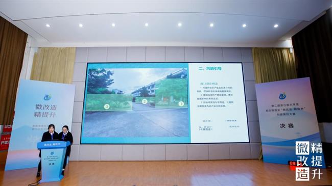 決賽現(xiàn)場,12組入圍作品的選手代表依次上臺(tái),結(jié)合PPT和視頻講解,緊扣項(xiàng)目需求和設(shè)計(jì)的現(xiàn)實(shí)意義,對設(shè)計(jì)的整體方案、創(chuàng)意思路、專業(yè)知識(shí)運(yùn)用等多方面進(jìn)行陳述和答辯,聚焦“微改造、精提升”成果,展開激烈對決。