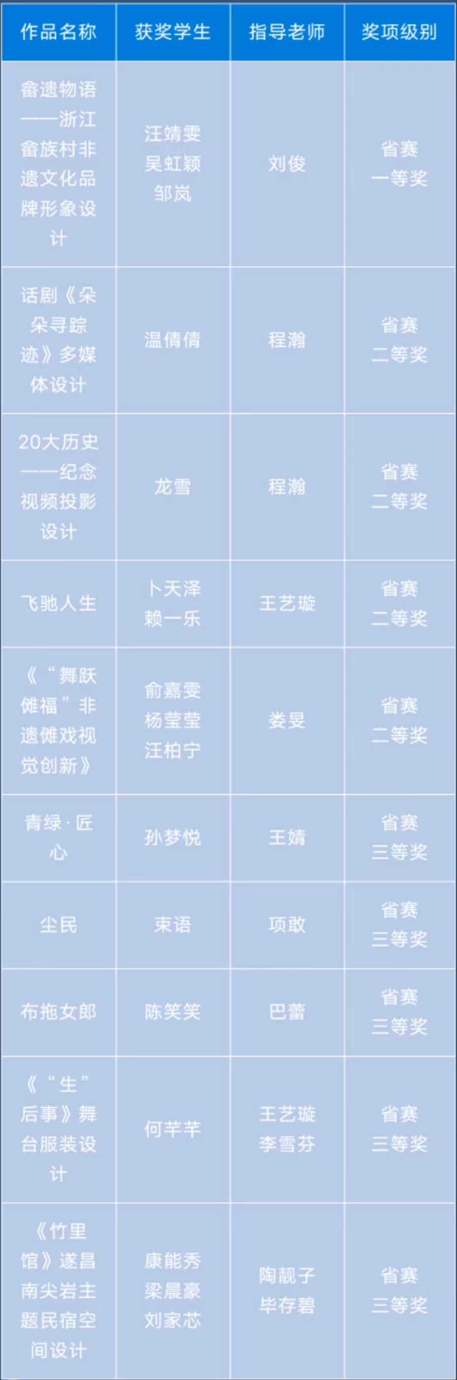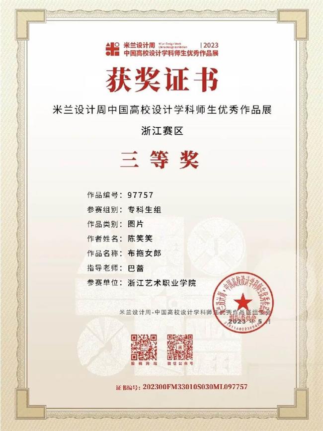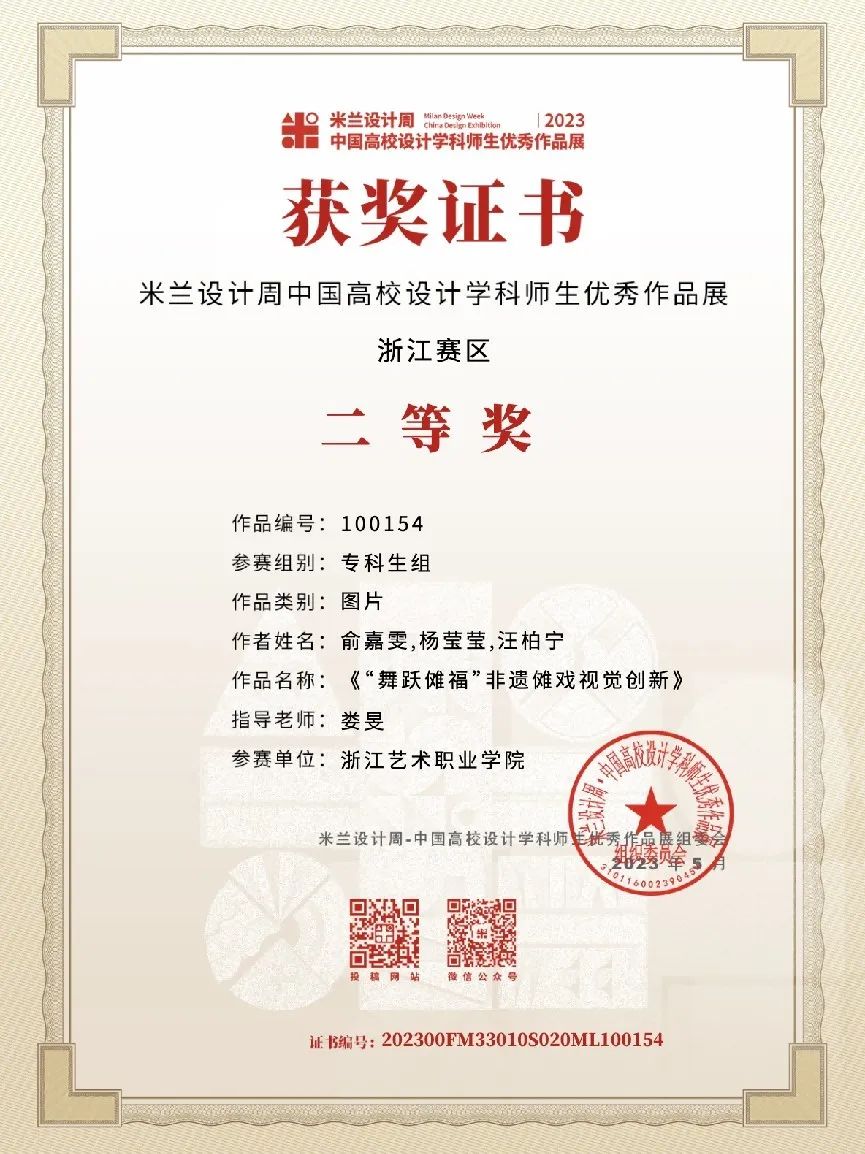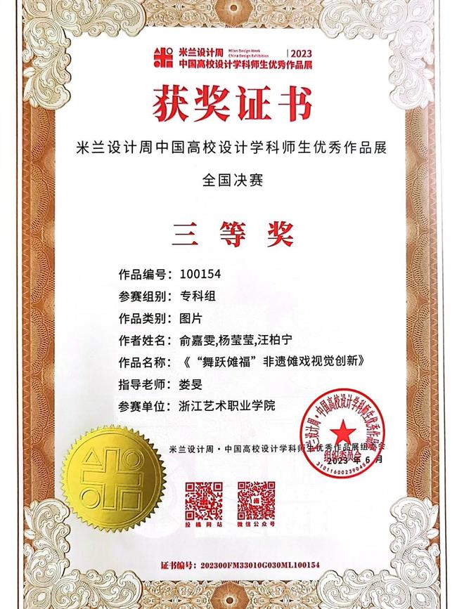 為提高學(xué)生運(yùn)用知識(shí)解決實(shí)際問題的能力,積極鼓勵(lì)學(xué)生參加各類專業(yè)競(jìng)賽,培養(yǎng)具有創(chuàng)新精神和實(shí)踐能力的高素質(zhì)技術(shù)技能人才。近日,由設(shè)計(jì)學(xué)院各專業(yè)教師指導(dǎo)的學(xué)生作品在2023“米蘭設(shè)計(jì)周——中國(guó)高校設(shè)計(jì)學(xué)科師生優(yōu)秀作品展”中喜獲佳績(jī)。經(jīng)過校內(nèi)選拔、浙江賽區(qū)選拔,作品獲得國(guó)賽一等獎(jiǎng)1項(xiàng),三等獎(jiǎng)1項(xiàng);浙江賽區(qū)獲省一等獎(jiǎng)1項(xiàng),二等獎(jiǎng)4項(xiàng),三等獎(jiǎng)5項(xiàng)的好成績(jī)。