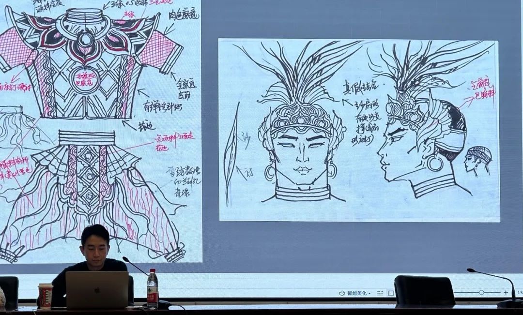 講座上,崔曉東介紹了他從事戲劇影視服裝設(shè)計行業(yè)多年來的寶貴心得。在案例分析環(huán)節(jié),他向大家分享了舞臺劇《平潭映象》,舞劇《諾瑪阿美》、《塵埃落定》等設(shè)計作品,分享了大量的設(shè)計手稿、幕后創(chuàng)作過程以及最后作品呈現(xiàn)出來的舞臺效果。同時,他結(jié)合作品創(chuàng)作歷程,講解了面料再造的具體過程和使用方式。強(qiáng)調(diào)了從事戲劇服裝行業(yè)應(yīng)該掌握的必備專業(yè)基礎(chǔ)課程及其重要性,鼓勵大家多看、多學(xué)、多練。