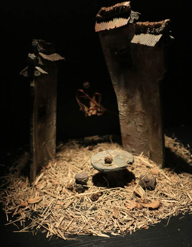 雖然課余生活豐富,但在學習上我從不缺課,在學了一年多的課本基礎后我開始創(chuàng)作舞臺模型作品《殘垣》。李昌國老師和吳放老師對設計教學非常嚴謹,讓同學們不斷訓練模型制作,從空間與視覺的變化提高敏感度,把故事從模型創(chuàng)作中呈現(xiàn)出來。訓練成功是喜悅的,要獲得必須要先敢于面對困難,觀察生活,積極探討。后來我們慢慢地從理論轉(zhuǎn)實踐,給影視表演班設計并制作一部部話劇的舞美道具。那時候我和同學第一次拿起榔頭、鋸子等工具當上了“裝修”師傅,在各種材料中不斷摸索如何制作出逼真的舞美作品。后來在2014年,舞美教研室的老師們帶著我們參加了中國舞臺美術(廣州)年展,我設計的舞美作品獲得金獎。