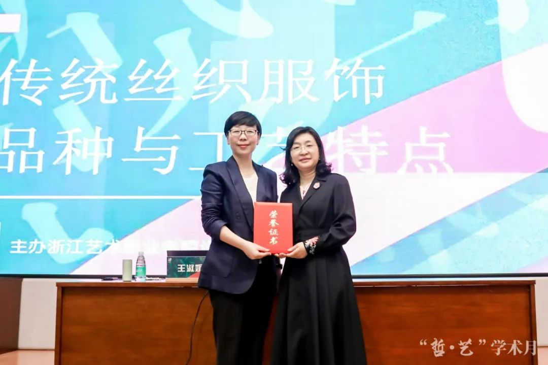近日,設(shè)計(jì)學(xué)院邀請(qǐng)了中國絲綢博物館陳列保管部主任王淑娟,在學(xué)校圖信中心報(bào)告廳舉辦了《傳統(tǒng)絲織服飾品種與工藝特點(diǎn)》的專題講座。服裝與服飾設(shè)計(jì)教研室全體師生參與此次講座。設(shè)計(jì)學(xué)院黨總支書記汪琳為主講人王淑娟頒發(fā)榮譽(yù)證書。此次講座由服裝與服飾設(shè)計(jì)專業(yè)教研室主任巴蕾擔(dān)任學(xué)術(shù)主持。