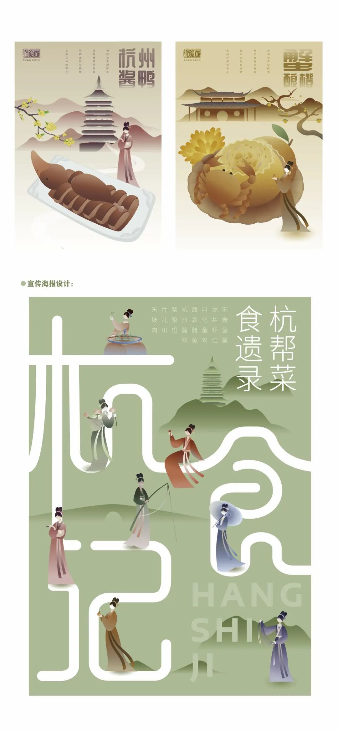 設(shè)計(jì)主題:《杭食記——杭幫菜圖形創(chuàng)意設(shè)計(jì)及應(yīng)用衍生》