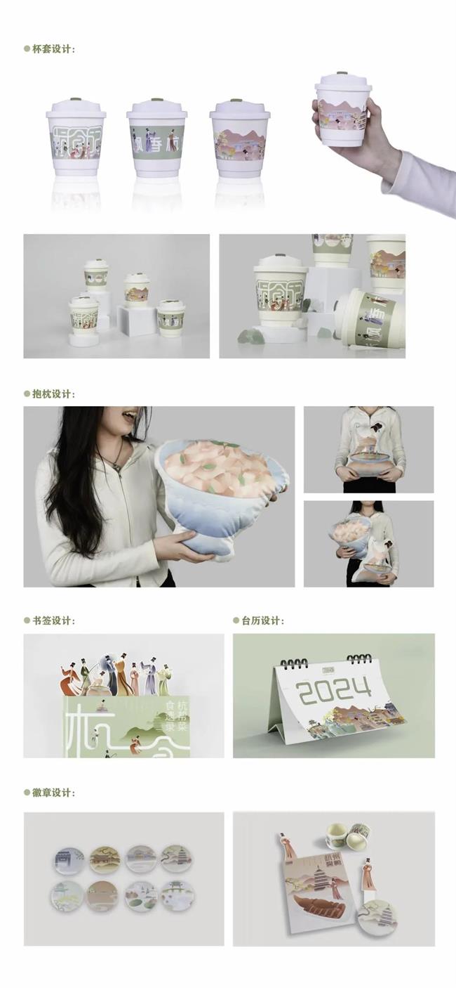 設(shè)計(jì)說(shuō)明:該設(shè)計(jì)以“杭幫菜”為主題詣在讓更多人了解“杭幫菜”的特色與歷史,宣傳杭州的飲食文化。“杭幫菜”起源于距今一千多年的宋朝,我們將宋韻文化融入到視覺(jué)圖形插畫(huà)中,從多方面、多層次詮釋“杭幫菜”的定義。以八種經(jīng)典杭幫菜為主體,將杭州著名景點(diǎn)及建筑融入到花草樹(shù)木、水澤山川中,再輔以“宋代女子”為藍(lán)本設(shè)計(jì)的IP人物形象,以視覺(jué)鮮明的菜品、淡雅脫俗的景觀、精巧動(dòng)態(tài)的人物形象三者合一,創(chuàng)作出全方位宣揚(yáng)“杭幫菜”與杭州飲食文化的作品。
