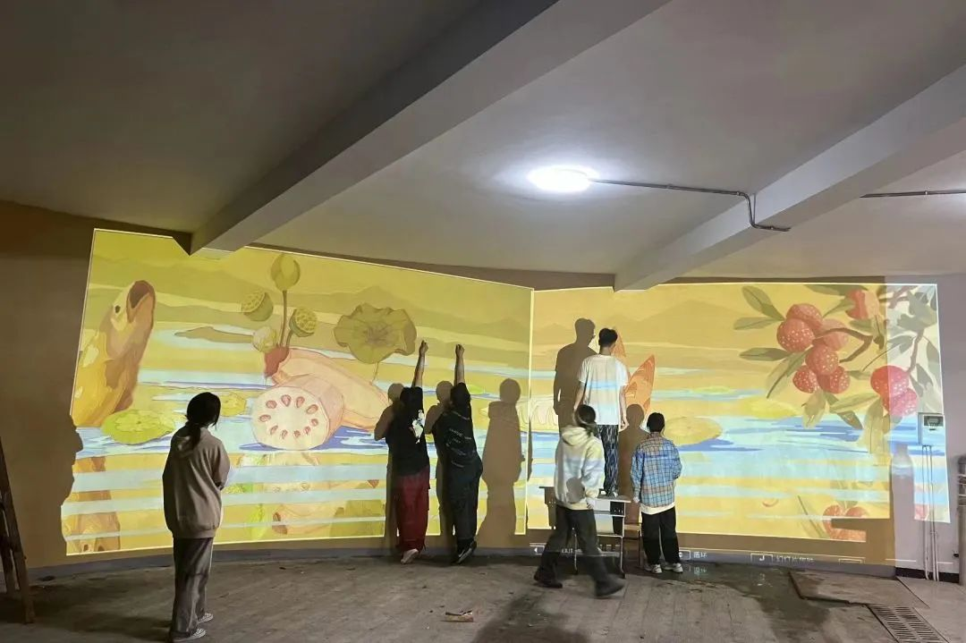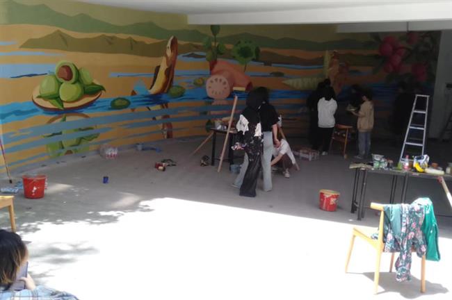 設計學子利用五一假期時間,積極投身于墻繪活動中,每一種顏色的調和,每一筆線條的繪制,看似輕松實則不易,迎著晨風,披著晚霞,表現(xiàn)出了極大的創(chuàng)作熱情,展現(xiàn)了堅韌不拔、無畏困難、吃苦耐勞、精益求精的專業(yè)素養(yǎng)和精神品質。