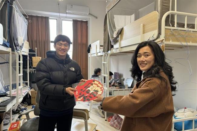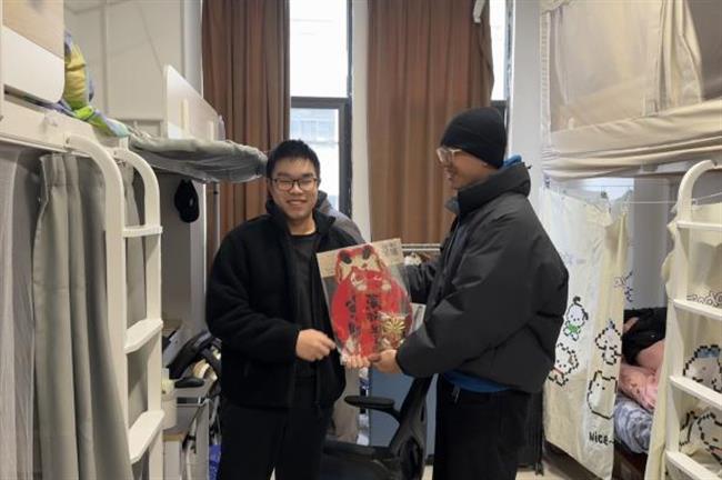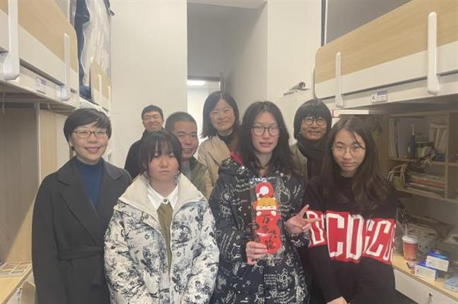 設計學院領導班子、全體班主任和輔導員走訪學生寢室,細心查看宿舍環(huán)境,關注每一位學生的返校情況,詢問學生的學習生活需求,為學生送上關懷。并叮囑學生認真完成勞動教育,保持整潔干凈的寢室衛(wèi)生環(huán)境。老師們還精心準備了富含龍年元素的春聯(lián)、掛件,寫滿了對學生的美好寄語,讓濃濃的年味與深深的人文關懷交織在一起。