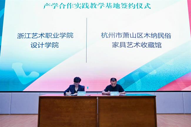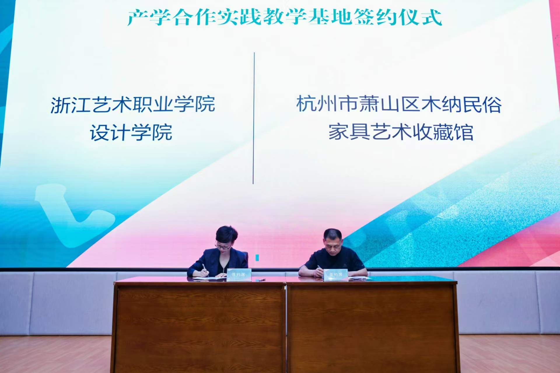 汪琳代表設(shè)計(jì)學(xué)院同校企合作企業(yè)簽署《浙江藝術(shù)職業(yè)學(xué)院產(chǎn)學(xué)合作實(shí)踐教育基地協(xié)議書(shū)》