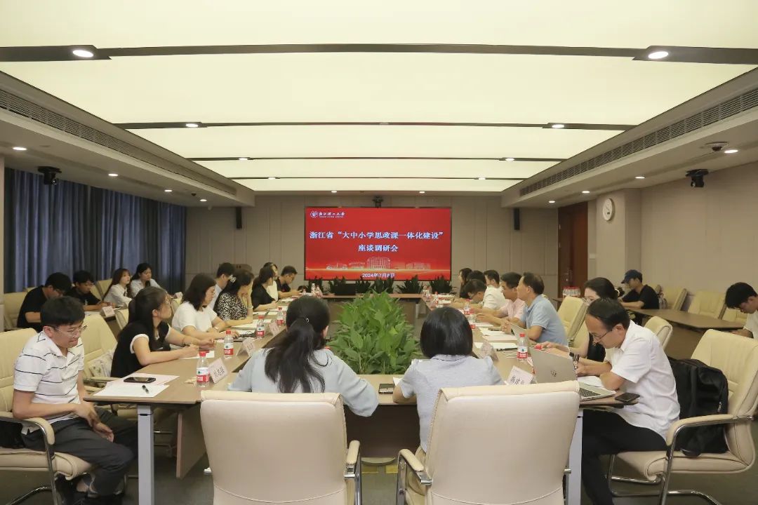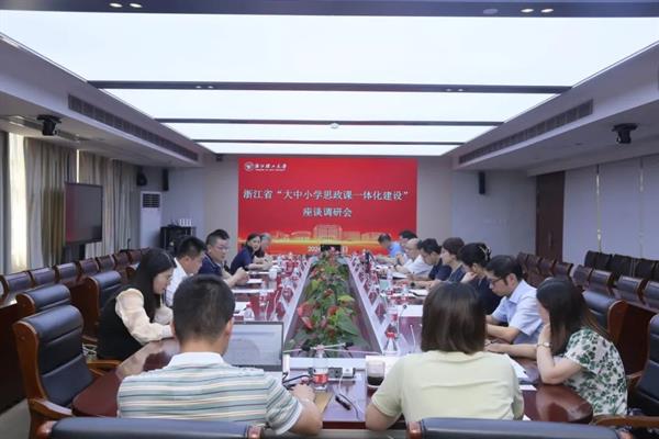 7月8日上午,浙江理工大學(xué)牽頭召開“大中小學(xué)思政課一體化建設(shè)”座談?wù){(diào)研會。校黨委委員、宣傳部統(tǒng)戰(zhàn)部部長傅文鋼帶隊,馬克思主義學(xué)院副院長胡卓群、馬院綜合教研室主任張義莎、馬院教師劉志強和學(xué)生代表劉興蓉、蔣馨漫同學(xué)一行6人與浙江理工大學(xué)、杭州電子科技大學(xué)、浙江工商大學(xué)、浙江傳媒學(xué)院、浙江樹人學(xué)院、浙江金融職業(yè)學(xué)院、浙江育英職業(yè)技術(shù)學(xué)院的校領(lǐng)導(dǎo)、馬院院長或副院長、教研室主任或課程負(fù)責(zé)人、思政課教師代表、學(xué)生代表共40余人,圍繞大中小學(xué)思政課一體化建設(shè)的總體情況開展交流研討。省教育廳宣傳教育與統(tǒng)戰(zhàn)處處長謝才波出席會議。本次調(diào)研會在兩個會場同步進行,浙江理工大學(xué)黨委副書記姚珺、馬克思主義學(xué)院黨委書記萬政分別主持會議。