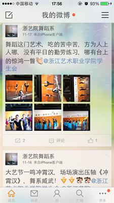 為強(qiáng)化舞蹈系黨總支宣傳的深度和力度,學(xué)生黨支部積極探索新思路、新方法,尋找新載體、新平臺(tái)。本學(xué)期以來,利用互聯(lián)網(wǎng)技術(shù)方便、快捷和實(shí)時(shí)互動(dòng)性等特點(diǎn),創(chuàng)建“舞蹈系微博”和“舞蹈系微信公眾平臺(tái)”,用同學(xué)們喜聞樂見的方式,建立圖文宣傳教育陣地,拓寬宣傳路徑,宣傳正能量。一方面,充分運(yùn)用微博、微信公共平臺(tái)主動(dòng)“發(fā)聲”,將學(xué)生工作和系部動(dòng)態(tài)及時(shí)宣傳,自覺鞏固和壯大主流思想輿論;另一方面也對(duì)同學(xué)們提出的問題及時(shí)網(wǎng)上在線答復(fù),通過“私信”互動(dòng)等方式,有效地增強(qiáng)黨支部與同學(xué)們間的信息溝通、互動(dòng)交流。不斷將黨性宣傳教育工作推向深入,加強(qiáng)與同學(xué)的溝通與互動(dòng)。