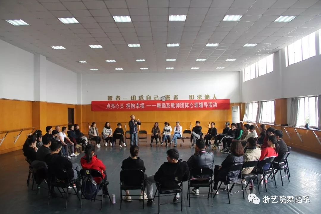 為營造我系積極向上的教學(xué)氛圍,增進(jìn)教師之間的溝通交流,進(jìn)一步提高舞蹈系教師團(tuán)隊的凝聚力。11月13日中午,舞蹈系黨總支邀請杭州電子科技大學(xué)心理健康教育中心專任教師楊懷盛老師為我系教師開展體驗式心理活動課堂。舞蹈系主任張星老師,黨總支專職副書記吳穎老師以及全體教師參加了活動。