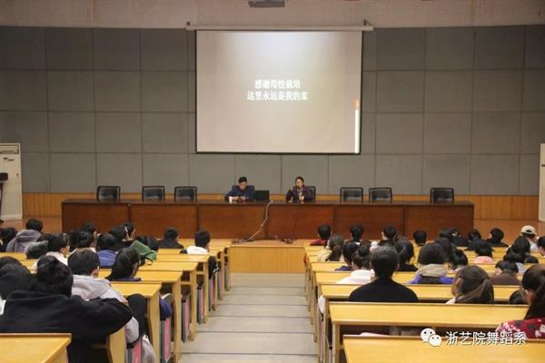 我們每位同學都將面臨的問題——“升學還是就業(yè)”?王鵬用自身的優(yōu)劣勢的分析,給了我們他的解讀。他強調(diào)了不可忽視的文化課業(yè),向我們表述了,在大學生活中他機緣巧合他又參加了全國舞蹈“荷花獎”,告訴我們創(chuàng)編是需要積累,機會是留給有準備的人。在他考慮就業(yè)方向去留時,他選擇了回歸故鄉(xiāng)----溫州,為家鄉(xiāng)奉獻出自己的一份力量。