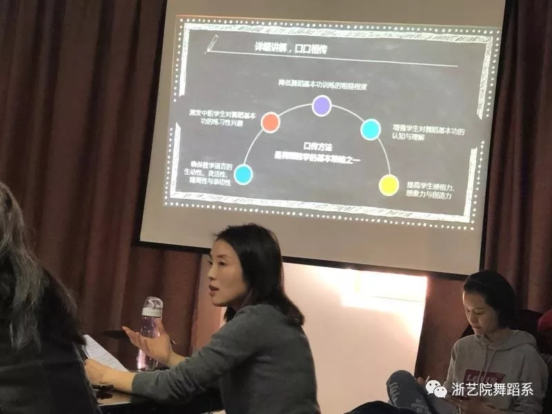 青年教師任承旭和楊博文的教學內(nèi)容深刻融入了課程思政,用潤物細無聲的方式在教授專業(yè)知識的同時加強了學生思政教育。邊巍巍對信息化教學進行了深入研究,從硬件和軟件兩個方面入手,提出了借助信息技術開展舞蹈教學、人才培養(yǎng)的改革思路, 實現(xiàn)舞蹈課教學方法、模式的進一步改進。每位參賽教師通過大氣、沉著、生動的教學風格和精美的ppt展現(xiàn)了各自新穎的教學模式、獨特的教學設計、深刻的教學反思,充分展示了我系教師的特色風采。