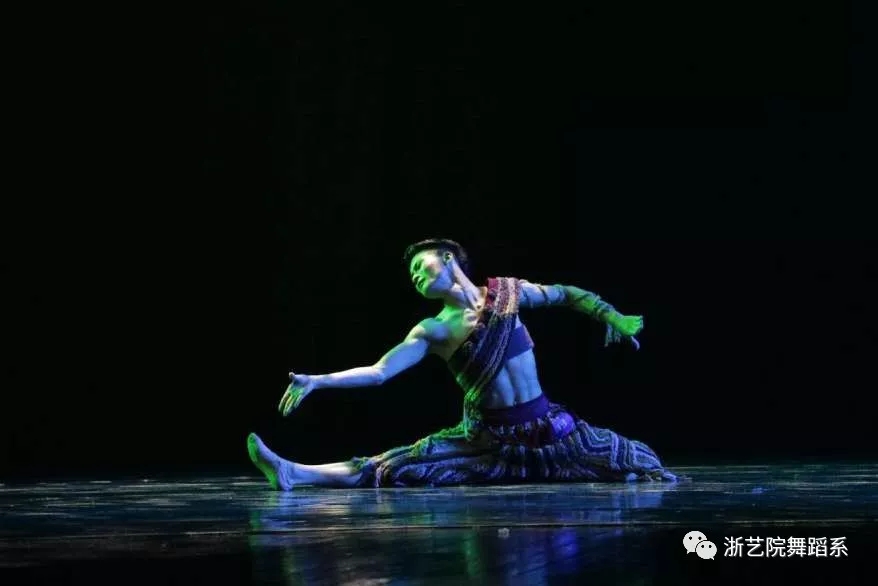 李秀博的劇目是傣族的《吉祥樹(shù)》,演繹了傣文化中吉祥鳥(niǎo)“孔雀”與林之魂“大樹(shù)”之間“靈”與“情”交融的和諧畫(huà)面,一人分飾兩角把對(duì)“孔雀”圖騰的崇拜以及大自然天地合一的理念淋漓盡致地呈現(xiàn)在舞臺(tái)上。