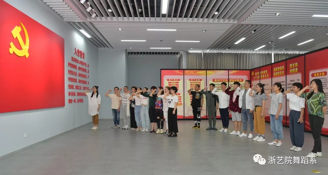 在黨員學(xué)習(xí)室,教工支部書記孫天添上了一堂有情境有情懷的《用紅船精神引航,以舞鑄時(shí)代精彩》黨課,督促舞蹈系全體教工黨員牢記心中舞蹈教育者的使命,勇于為浙江舞蹈開創(chuàng)新的未來(lái)。在莊嚴(yán)的黨旗之下,大家重溫入黨誓詞,時(shí)刻謹(jǐn)記光榮使命。