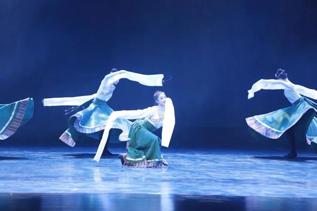《牧區(qū)》藏族課堂展示充滿著濃郁的藏族風情,每一個輕盈的舞步,每一個身體的律動,都在詮釋著藏族姑娘對生活的熱愛,給人一種飄逸而又沉穩(wěn)的感覺。