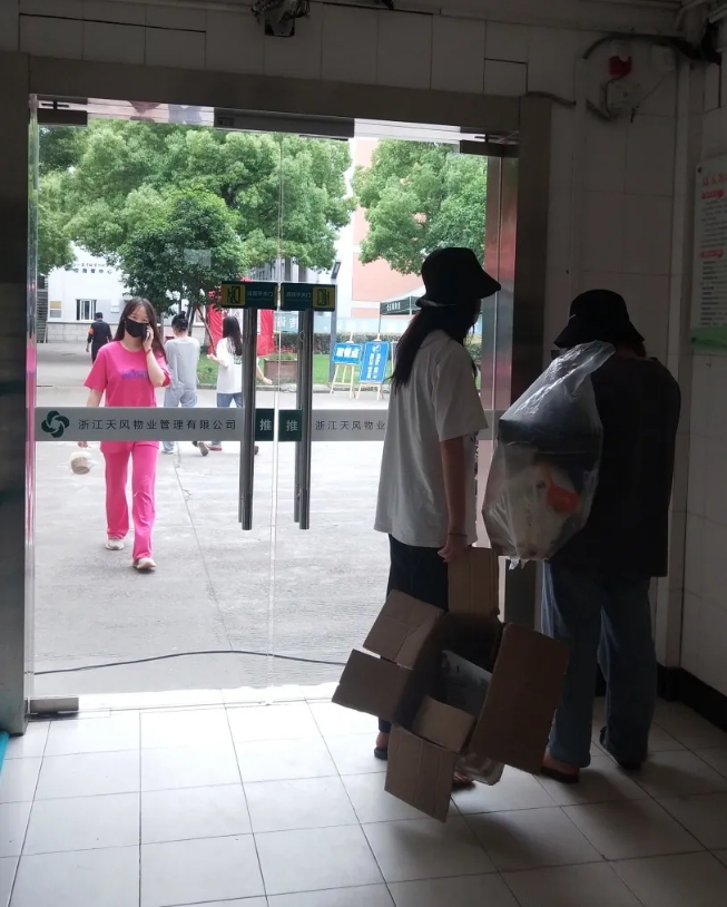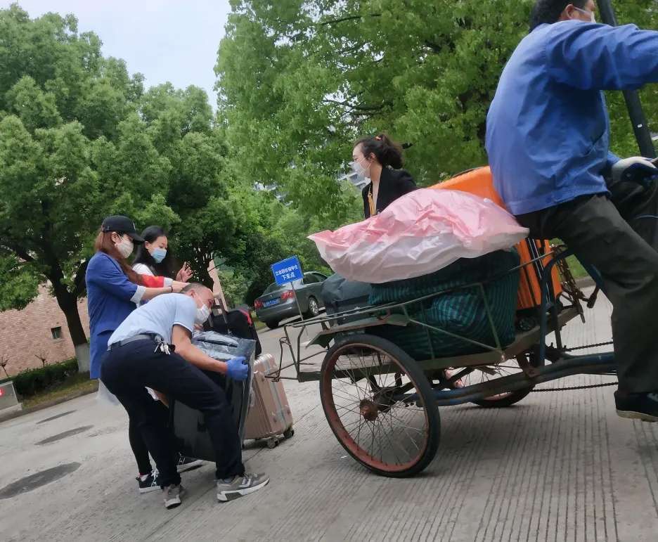 所有學(xué)生在下車點下車,家長一律禁止下車,所以學(xué)生的行李都是在老師們和同學(xué)們的幫助下搬到寢室。