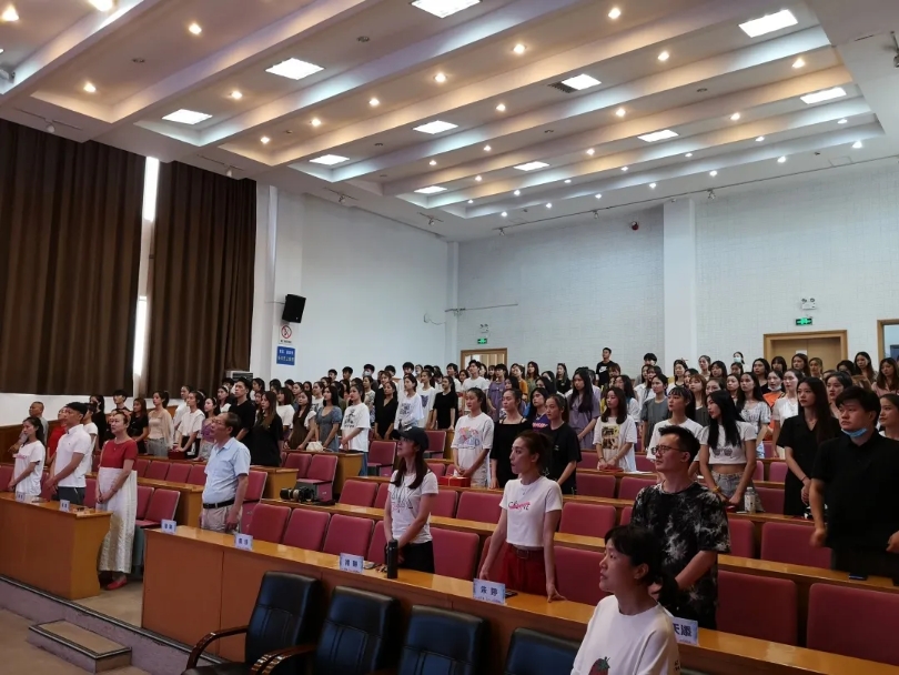 典禮在莊嚴(yán)的國歌聲中開幕,全體師生齊唱國歌。