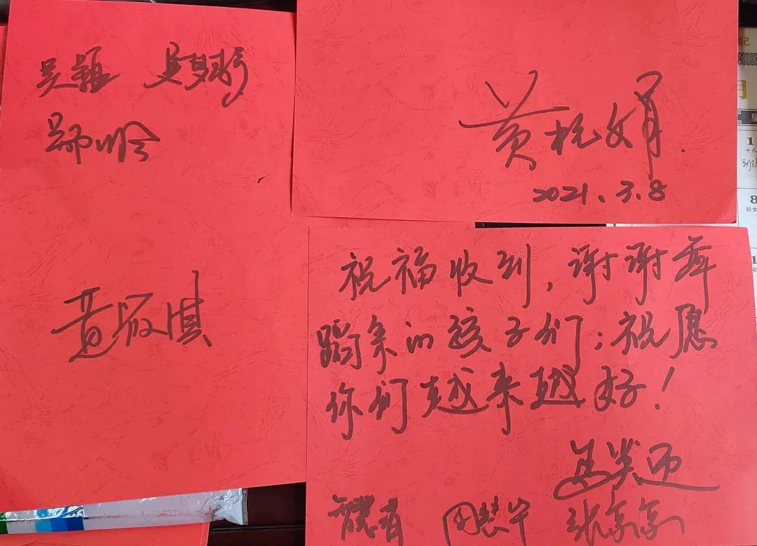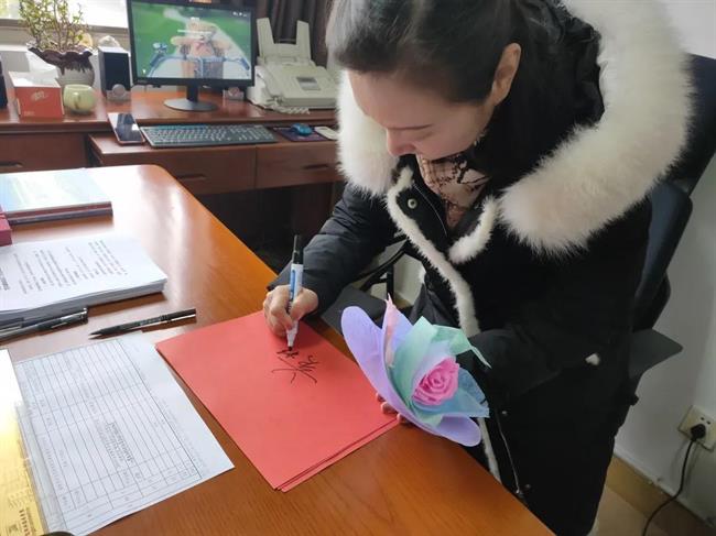 3月8日清晨,同學們將一朵朵五顏六色的花束獻給平日里辛勤澆灌藝術(shù)之花的老師們,這是一種愛的回饋。老師們接過“鮮花”,露出開心的笑容,她們在簽名簿上簽字,留下了溫暖的印記。