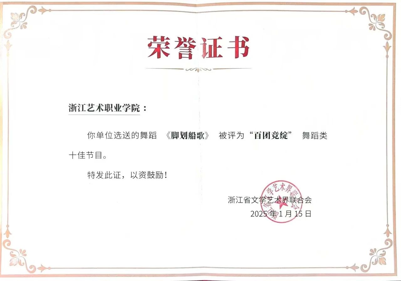 舞蹈學院原創(chuàng)作品《腳劃船歌》作為舞蹈類“十佳節(jié)目”受邀參演,以紹興特色的腳劃船為視覺主線,營造了“搖櫓聲中波光稠”的唯美意境,展現(xiàn)出水鄉(xiāng)人家的悠然歲月,也傳遞了濃濃的鄉(xiāng)愁,具有鮮明的浙江地域特點和強烈的時代氣息,獲得現(xiàn)場專家和觀眾的一致贊譽。