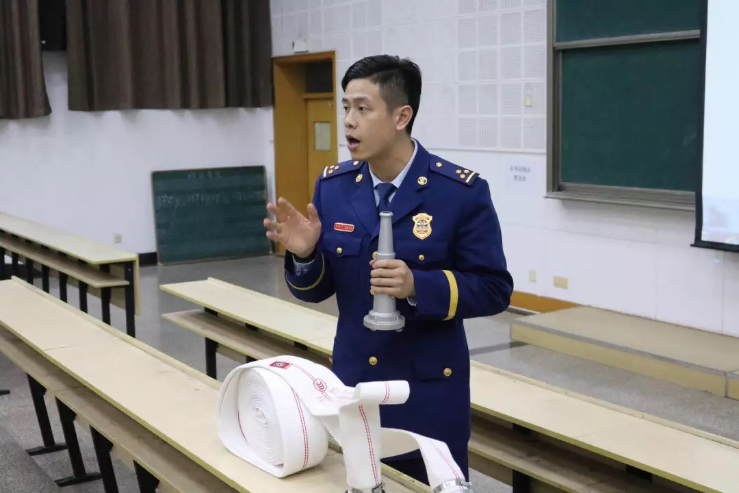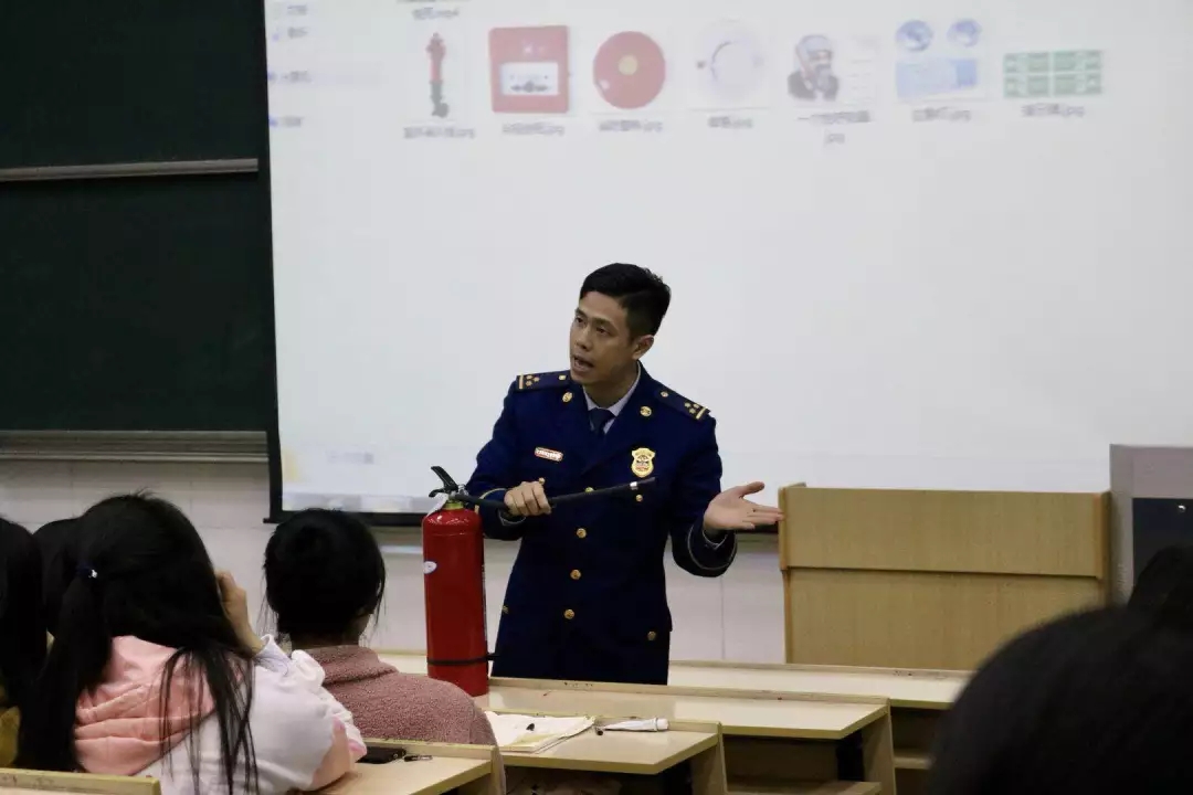 為進一步普及消防安全知識,提高學(xué)生火災(zāi)預(yù)防、火場逃生自救能力,掌握滅火器材使用方法,4月10日晚,文化管理系在階梯二教室舉辦了“消防安全知識講座”。杭州市公安消防支隊江干大隊防火參謀章一立主講,文化管理系班主任、教師代表和18級學(xué)生參加講座。