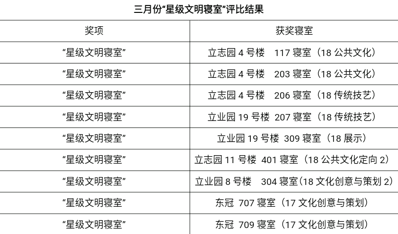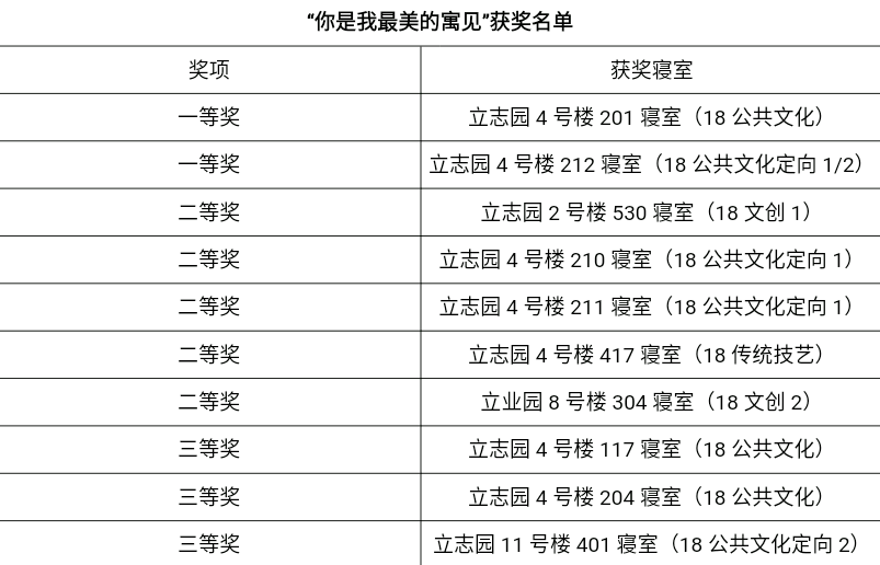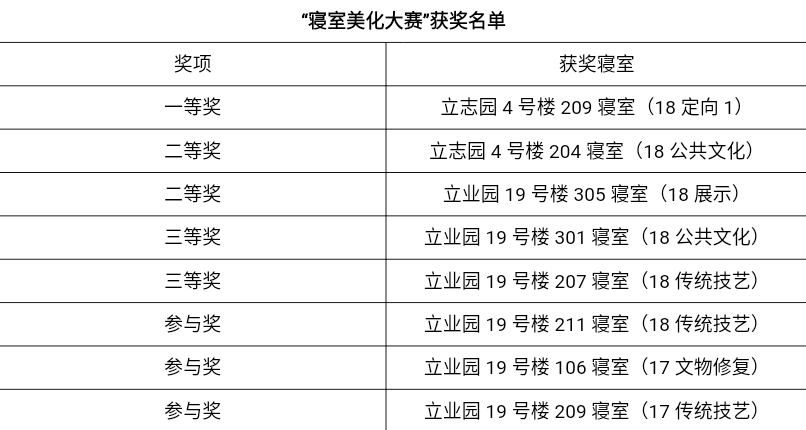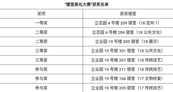 本次活動(dòng)的開展,使各寢室在推廣寢室文化,提高自身創(chuàng)新能力、合作能力等方面都有所提升。寢室成員也在合作中增進(jìn)了感情,進(jìn)一步融入了校園生活,展現(xiàn)了寢室的風(fēng)采。