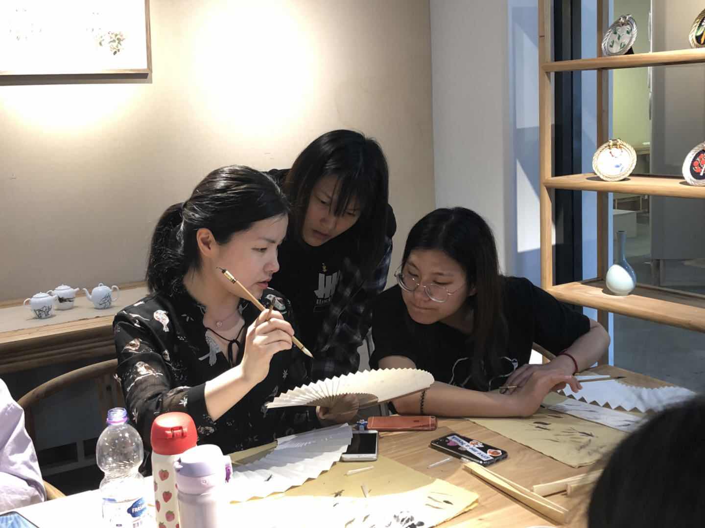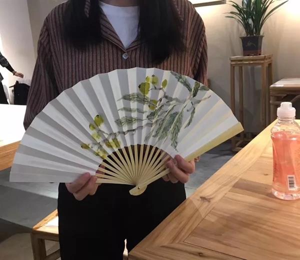 課上,游曉婷為同學(xué)們講解了杭扇的制作流程、注意事項與扇面繪畫技巧。趙平加拿出了工作室的扇繪作品啟發(fā)同學(xué)們的靈感。兩位老師根據(jù)學(xué)生所用花鳥和山水畫臨本的不同,進(jìn)行了逐一的悉心指導(dǎo)。學(xué)生們學(xué)習(xí)和體驗了穿面、扇面繪畫等杭扇工藝制作流程,一筆一畫,精雕細(xì)琢。