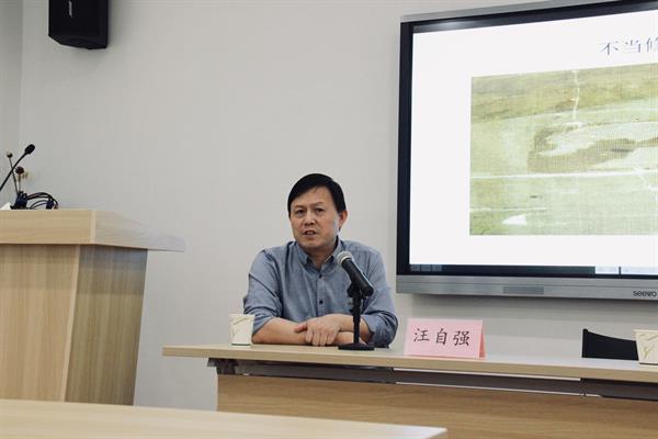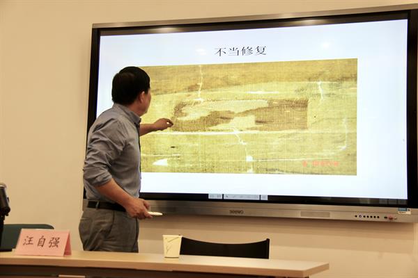 為進(jìn)一步提高文物修復(fù)與保護(hù)專業(yè)學(xué)生的專業(yè)知識(shí),掌握書畫裝裱專業(yè)發(fā)展動(dòng)態(tài)。近日,文化管理系邀請(qǐng)中國絲綢博物館三級(jí)研究館員、技術(shù)修復(fù)部主任、中國紡織品鑒定保護(hù)中心副主任、復(fù)旦大學(xué)碩士生導(dǎo)師、我校特聘教授汪自強(qiáng)來做“古代書畫裝裱修復(fù)與工匠精神”專題講座。