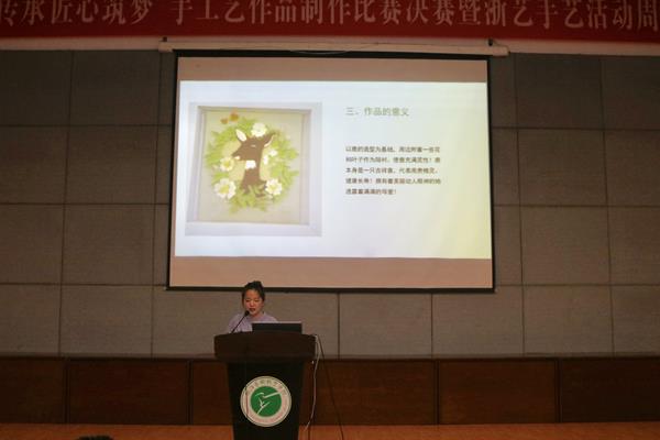 沈軍甫宣布了手工藝比賽獲獎結(jié)果并致閉幕詞。他指出這次活動是我校“浙藝手藝”的一次盛會,也是落實“立德樹人”根本任務(wù)的一項舉措,詮釋我們中華優(yōu)秀傳統(tǒng)文化創(chuàng)造性轉(zhuǎn)化、創(chuàng)造性發(fā)展,增強中國特色社會主義文化自信的一項有力抓手,有利于發(fā)掘?qū)W生的藝術(shù)潛力,發(fā)揮個性特長,提高審美情趣,豐富校園文化生活。他希望這項活動今后能一如既往地開展下去,常做常新,以“浙藝手藝”活動周為契機,把工匠精神傳承弘揚下去,與優(yōu)秀傳統(tǒng)文化同行,以巧思巧藝鑄造匠心之夢!