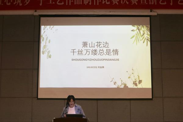 18公共文化班何金燕講述了蕭山花邊的由來及其發(fā)展歷程,以自己的手工藝呼吁大家關(guān)注我們非物質(zhì)文化遺產(chǎn)蕭山花邊。