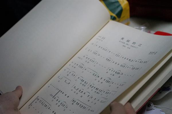 他雖然沒有得到專業(yè)的音樂訓(xùn)練,但他一直未曾放棄自己的音樂夢。在墾荒期間,兩次報考音樂學(xué)院并受到老師的賞識,遺憾的是無疾而終。《潮起東海》是他五年墾荒結(jié)束后,收錄其作品的一本書。《美麗的大陳島》、《墾荒隊員之歌》、《墾荒精神代代傳》等都是他受勞動啟發(fā)創(chuàng)作的歌曲。其中,《墾荒精神代代傳》還被改編為情景劇在全市巡演。聊到興起之時,他還現(xiàn)場為我們演唱了一段。渾厚的嗓音中帶有對過去生活的記憶,更多的是高昂奮進的主旋律。