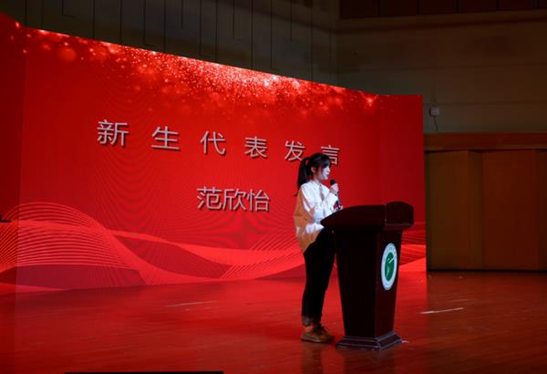 20定向2班范欣怡作為新生代表發(fā)言,她說,經(jīng)歷了鐵一般的軍訓歷練今后會用最飽滿樂觀的自己去迎接在浙藝的每一個清晨與日落,在浙藝的指引下做到“求真 尚美 精藝 修為”,只爭朝夕,不負韶華。