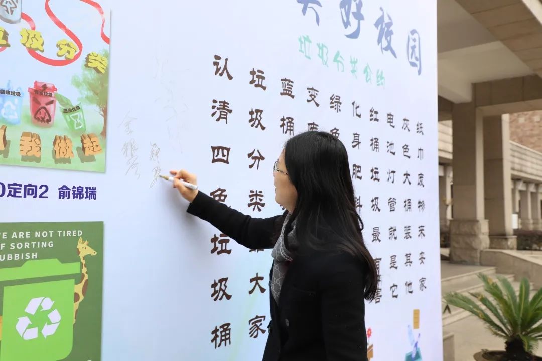 楊雨潔同學(xué)作為學(xué)生代表上臺莊嚴(yán)宣誓,誓詞錚錚,表達(dá)了文管學(xué)子愿意投身并積極引領(lǐng)垃圾分類行動,一字一句都道出了同學(xué)們保護(hù)環(huán)境的決心。