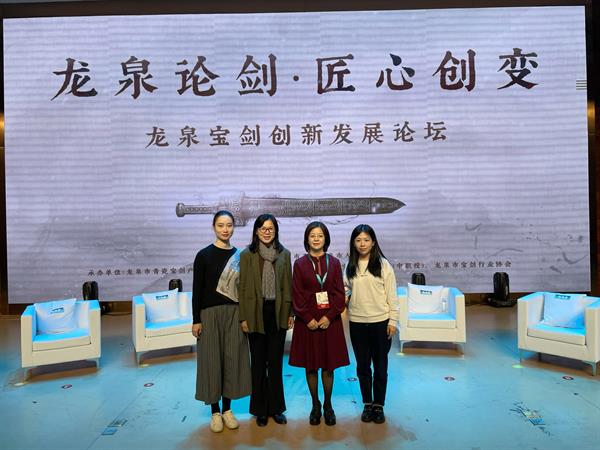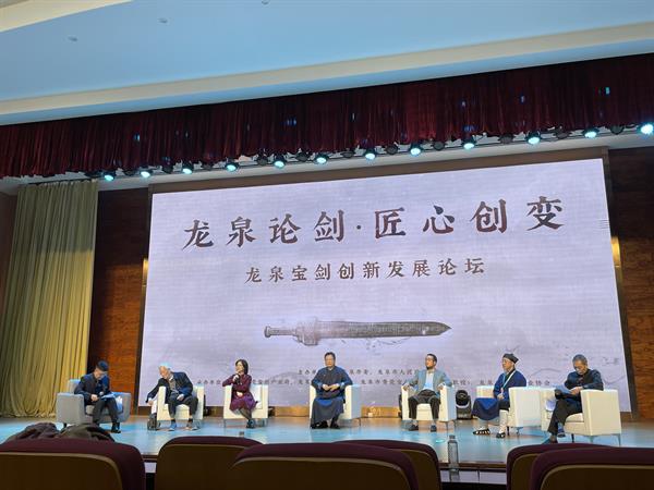 劉秀峰主任應(yīng)邀在“龍泉論劍·匠心創(chuàng)變”——龍泉寶劍創(chuàng)新發(fā)展論壇上發(fā)言,就“國家復(fù)興中華優(yōu)秀傳統(tǒng)文化大背景下的龍泉寶劍如何傳承創(chuàng)新、融合發(fā)展”、“作為歷史經(jīng)典產(chǎn)業(yè)的龍泉寶劍如何探索并確定新定位、新路徑、新業(yè)態(tài)、新模式”、“市場化視野下的龍泉寶劍藝術(shù)生態(tài)與文化價值”等議題發(fā)表了見解。她認(rèn)為在新的歷史條件下,龍泉刀劍制作要在材料、工藝和形態(tài)方面尋求突破,非遺產(chǎn)業(yè)要融入新生活,研究市場,找準(zhǔn)需求,才能喚發(fā)新的生機,實現(xiàn)產(chǎn)業(yè)振興。