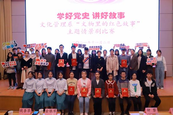 文化管理系黨總支書記金銀琴宣讀了獲獎結果,她對同學們的深情演繹給予充分肯定,同時表示,系里推出“文物里的紅色故事”系列活動,就是希望同學們能夠積極主動地挖掘紅色文物背后蘊藏的感人故事,這些故事里蘊含著我們黨的初心使命、優(yōu)良作風和黨的奮斗精神。希望同學們通過講述這些故事,從黨的百年歷程中汲取奮進的力量,把我們黨的紅色基因一代代傳承下去。